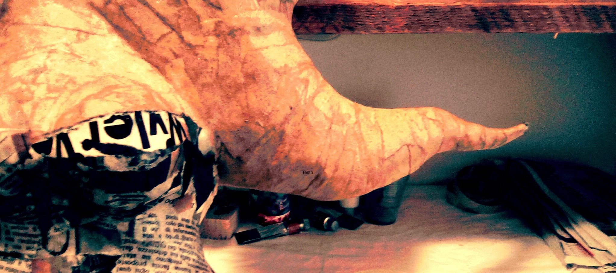 Il mio lavoro consiste nel modellare la carta asciutta con le mani e successivamente con del nastro carta, fino ad ottenere un’opera completa che successivamente viene “rivestita”